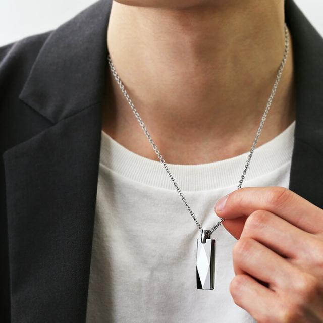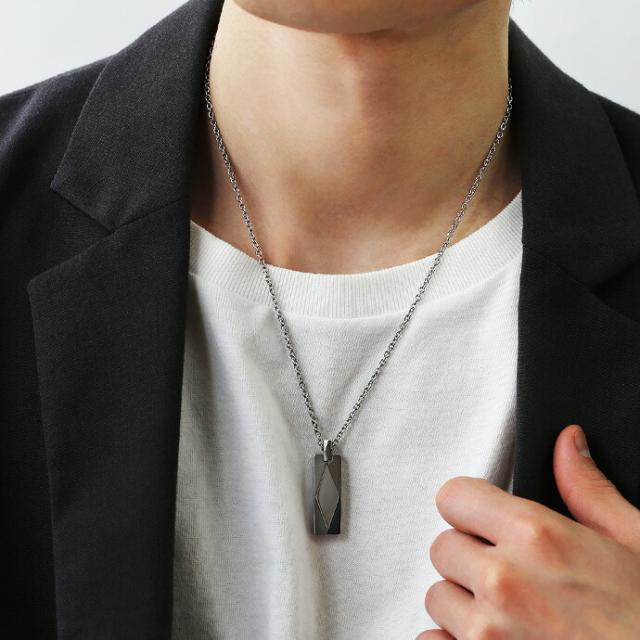 ■商品名:ネックレス メンズ シンプル タングステン ダイヤカット スティック ペンダント(アズキステンレスチェーン付き) シンプル オシャレ