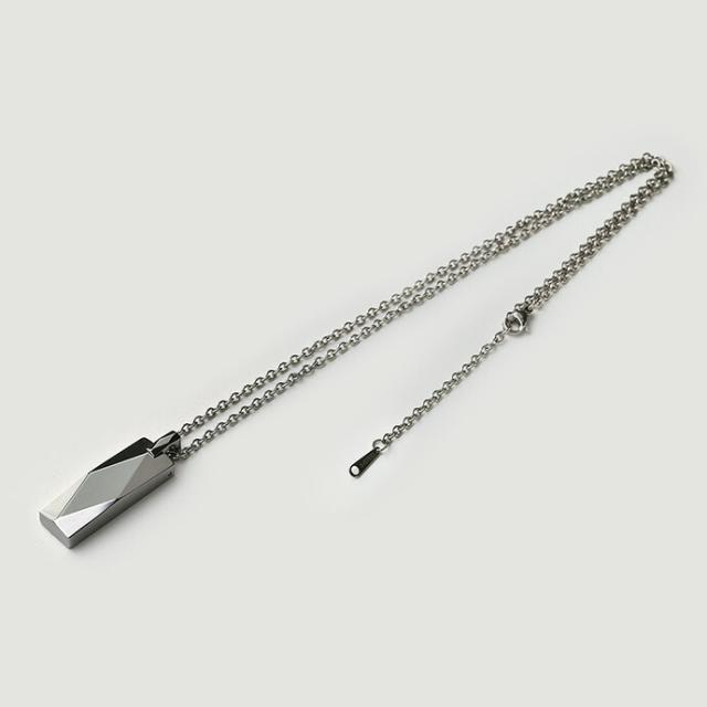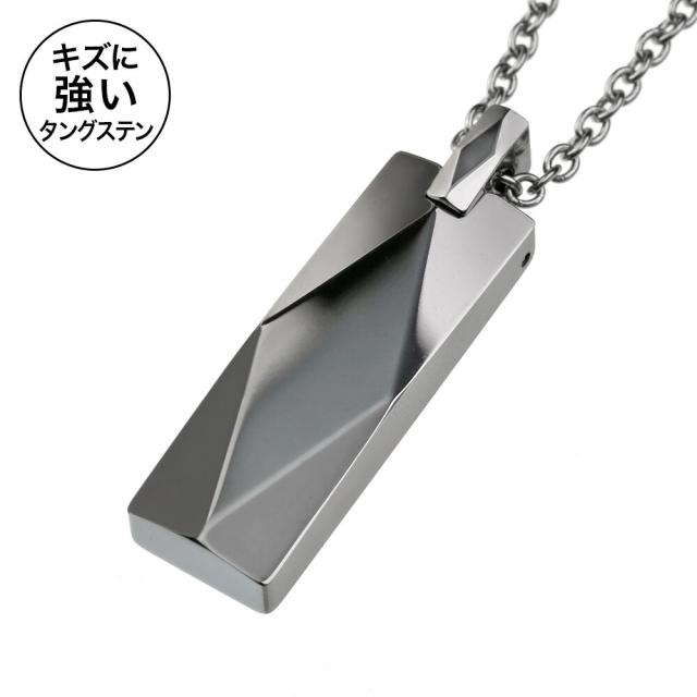 ひし形カッティングが入ったボディとバチカンが、様々な角度から光を反射し輝くペンダント。高い硬度を持ちキズが付きにくいことで知られる、タングステン製です。タングステンはスウェーデン語で「重い石」を意味し、金とほぼ同じ比重を持つ重い金属。 金属アレルギーが非常に起こりにくい点も魅力です。タングステン特有のしっかりとした重みと輝きが楽しめるスティック型ペンダントです。