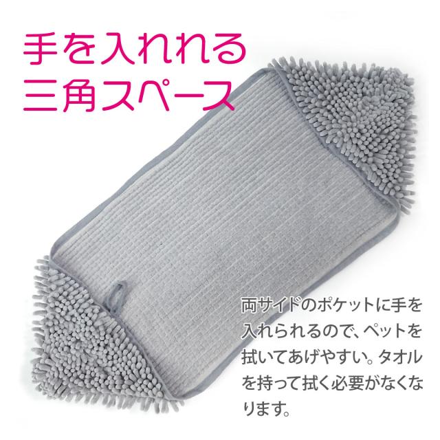 両サイドのポケットに手を入れられるので、ペットを拭いてあげやすい。