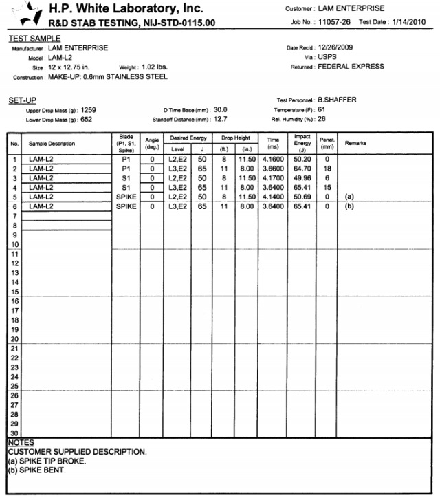 アイスピック 43J対応:防刃レベル“?”(NIJ-STD-0115.00)H.P.White.Lab