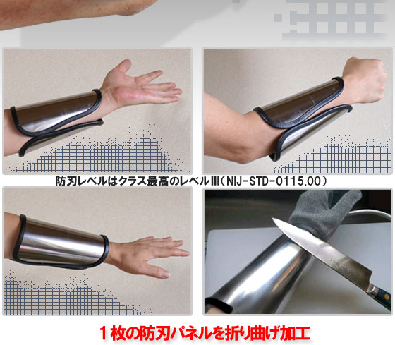 市販の防刃リストプロテクター(手甲)では世界一の強度があります。