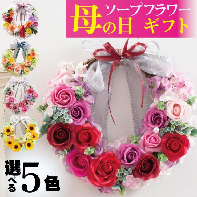 早割中 母の日 おしゃれな造花 プレゼント バラ ソープフラワー 【リース】 フラワー ギフト 花 アレンジメント 石鹸 香り インテリア 枯れない花 お手入れ不要 上品 お母さん 60代 70代 80代 プレゼント 薔薇 2026 吉本花城園
