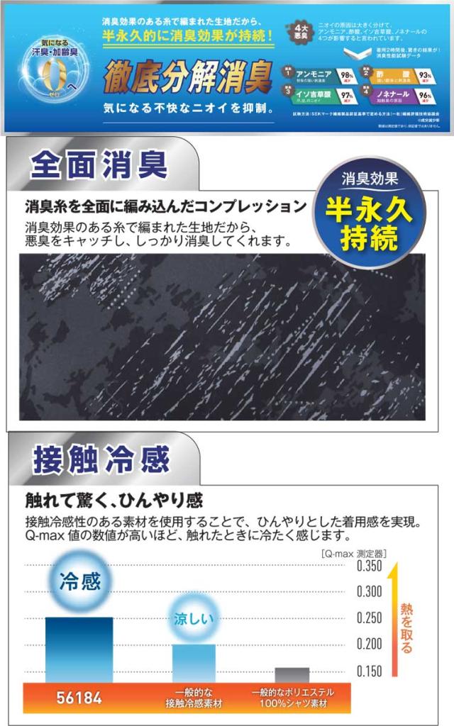 消臭効果のある糸で編まれた生地だから、半永久的に消臭効果が持続。