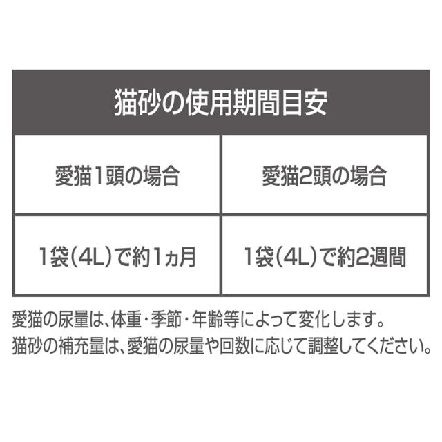 (4)尿を吸収すると崩れてトレーに落ちますので、猫砂が少なくなったら、新しい猫砂を補充してください。