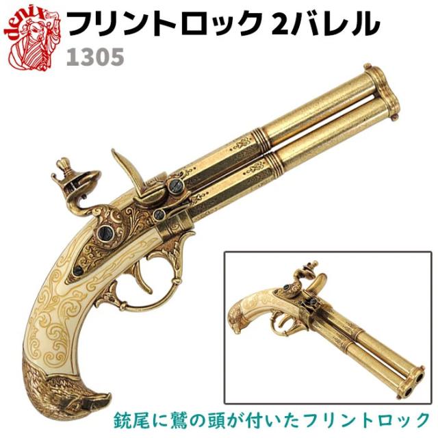 DENIX デニックス 1305 フリントロック 2バレル ゴールド 30cm レプリカ 銃 フリントロックピストル ミリタリー アーミー コスプレ 小物 模造 ピストル 拳銃 ポイント消化