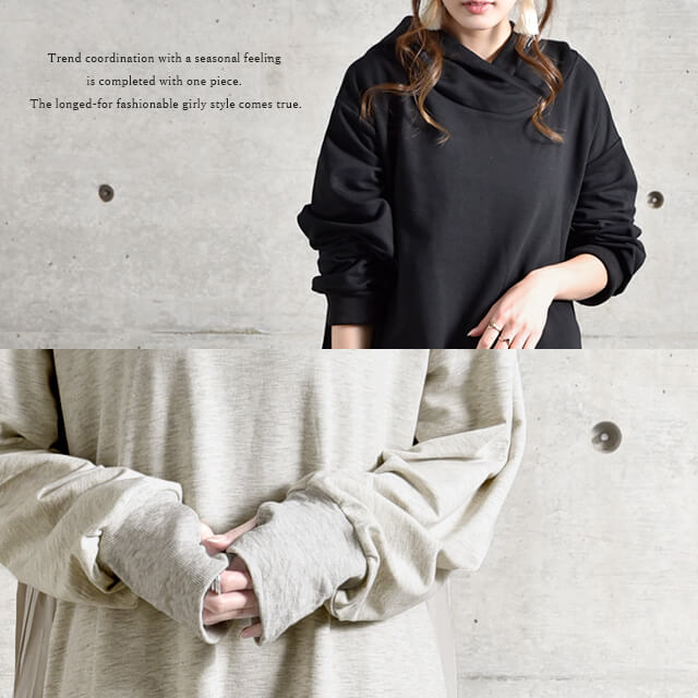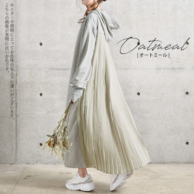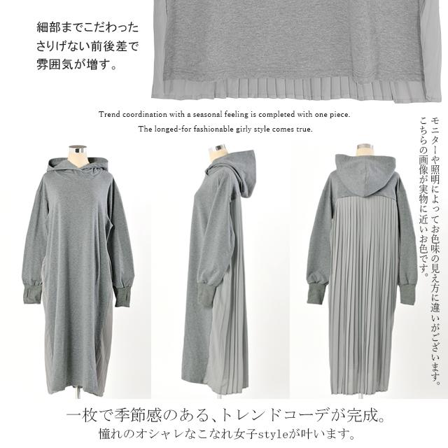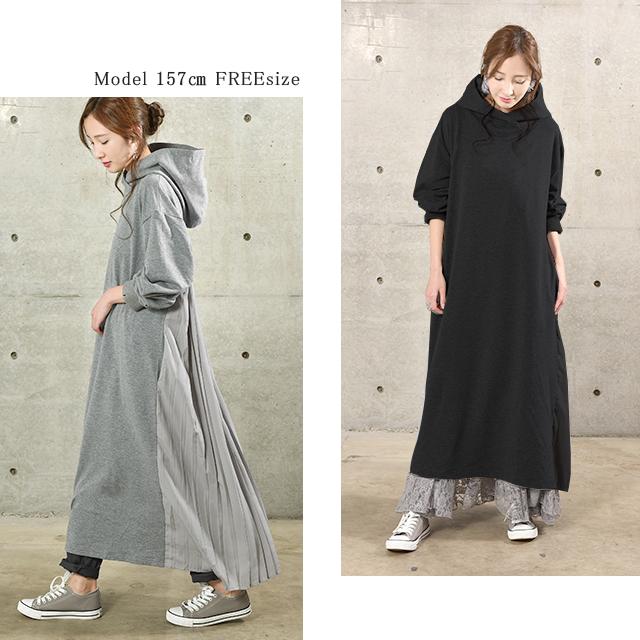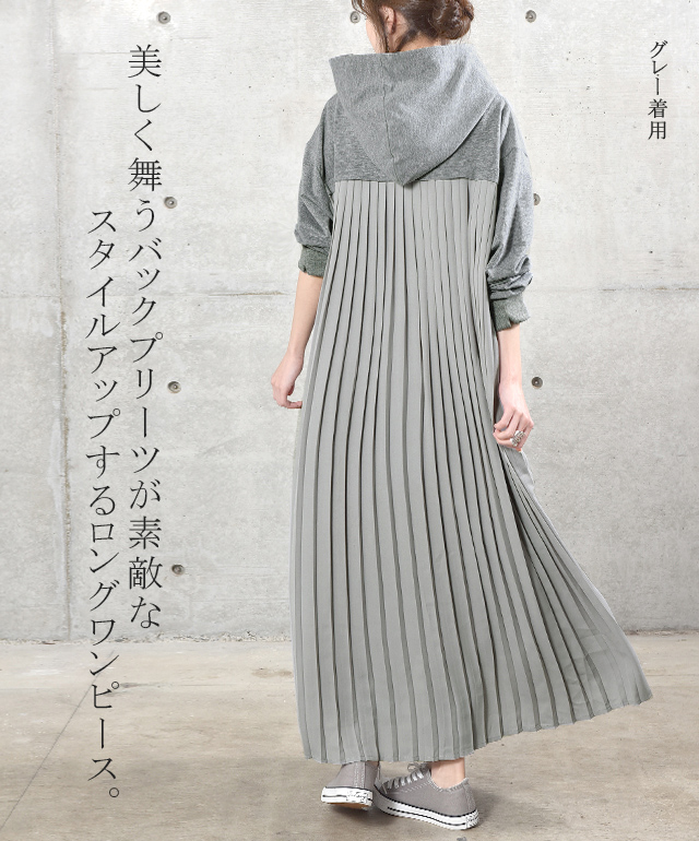 ワンピース ロングワンピース プリーツ バックプリーツ パーカーワンピース レディース ロングワンピ プリーツワンピース 長袖 体型カバー 指穴 トレーナー スウェット プルオーバー 大きいサイズ 冬 秋 秋新作