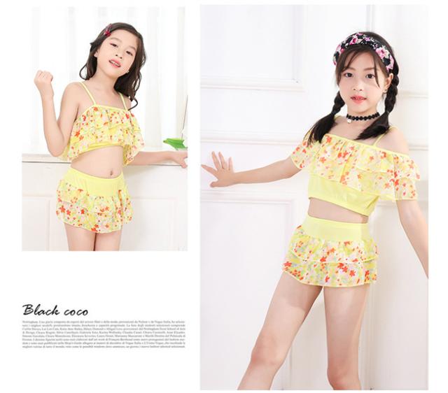 キッズ水着 女の子 ビキニ 3ways 2点セット 子供用 こども 女児 スイムウェア ガールズ ビキニセット 105-160cm 水泳服 水遊び 花柄