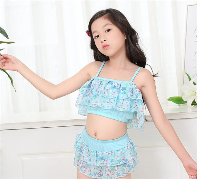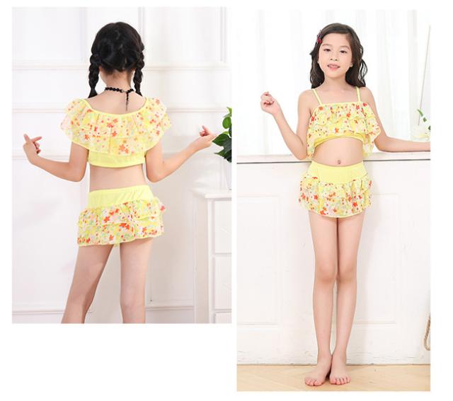 ・子供用 花柄 セパレート 水着 ビキニ水着素材の異素材MIXが新鮮!