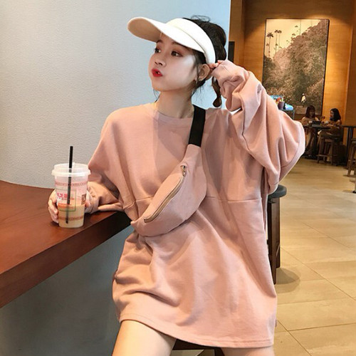 LAZA 【ピンク】長袖プルオーバー トレーナー 無地 ビッグシルエット ロングスリーブ ラウンドネック ショルダーバッグ レディース