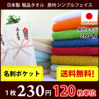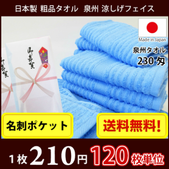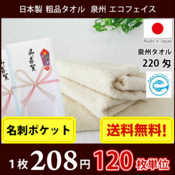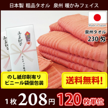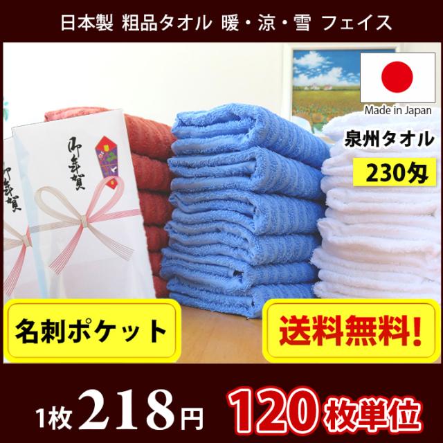 【送料無料】 タオル 粗品タオル 国産 日本製 泉州タオル230匁 暖・涼・雪 フェイスタオル のし 名刺ポケット付きビニール 粗品 お年賀タオル 120枚単位
