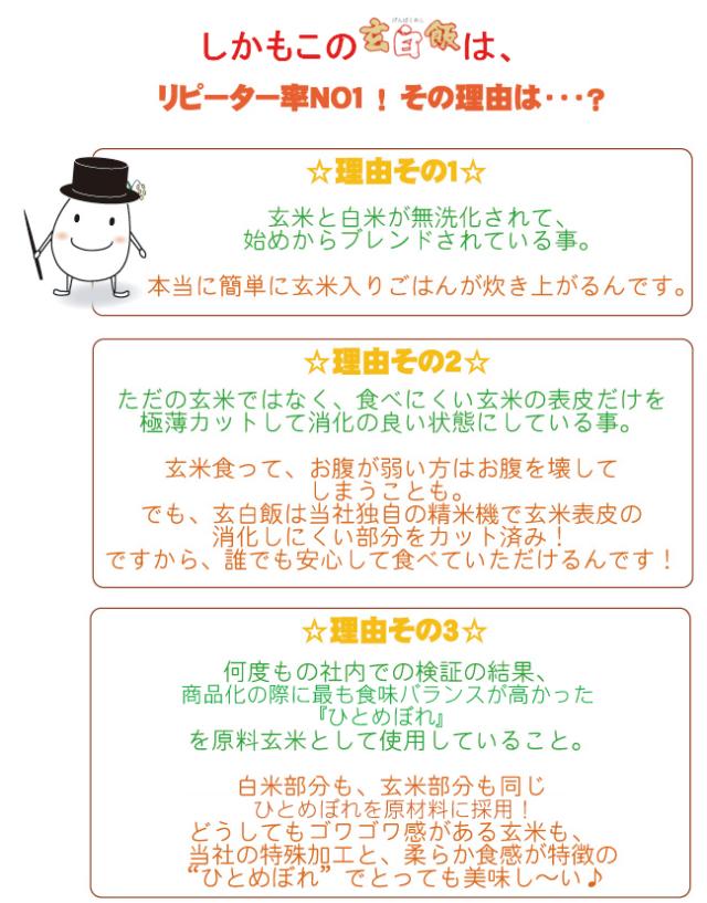 国内産のひとめぼれを100%使用。玄米と白米を1対1の割合で美味しくミックス♪玄米には特殊加工&無洗化処理済♪