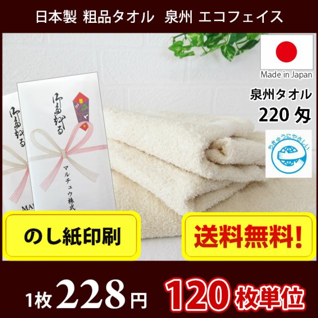 【送料無料】 タオル 粗品タオル 国産 日本製 泉州220匁エコフェイスタオル のし印刷 粗品 お年賀タオル 120枚単位