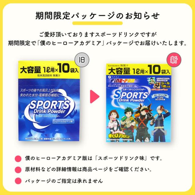 スポーツドリンク 粉末 パウダー 熱中症 対策 大容量 1L用(40g) 10袋入 ×20箱セット 僕のヒーローアカデミア