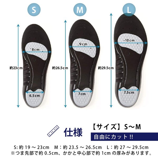 ※靴のサイズは各メーカーごとに異なりますので、少し大きめに切り、一度靴に敷いて微調整することをおすすめいたします。