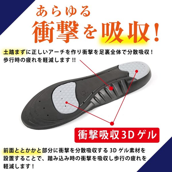 衝撃吸収3Dゲルが歩行時の衝撃を吸収し、足の疲れを和らげる効果が期待できます