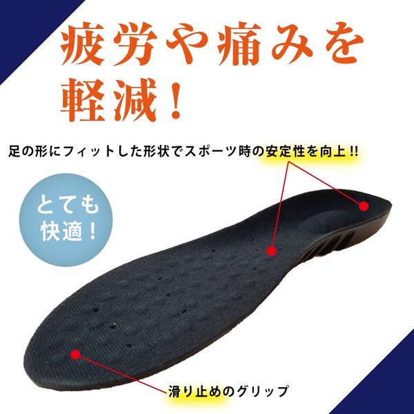 土踏まずに正しいアーチを作り衝撃を足裏全体で分散吸収、体のゆがみを改善し、バランスを整える効果が期待できます。