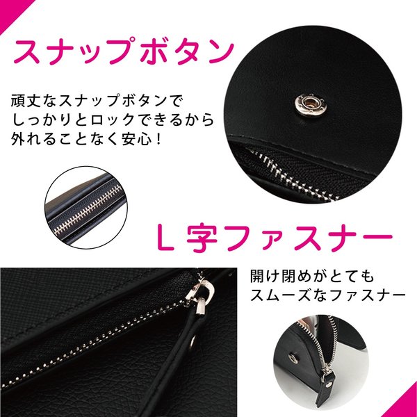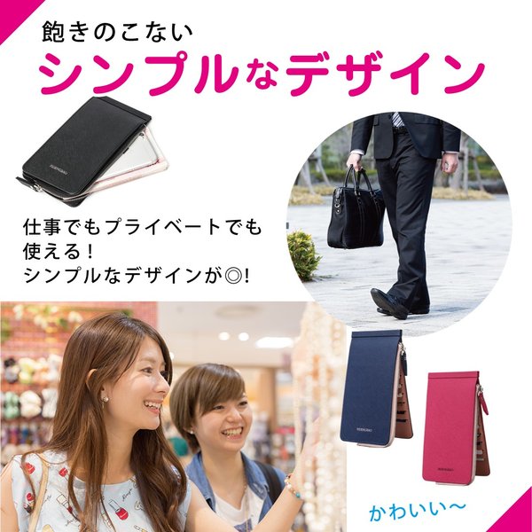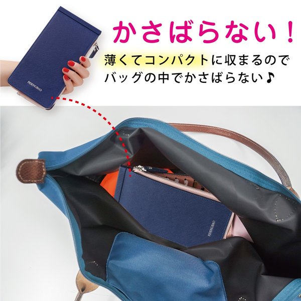 ファスナー付きの小物入れ付きで、レシートや商品券、鍵なども一緒に収納できます。