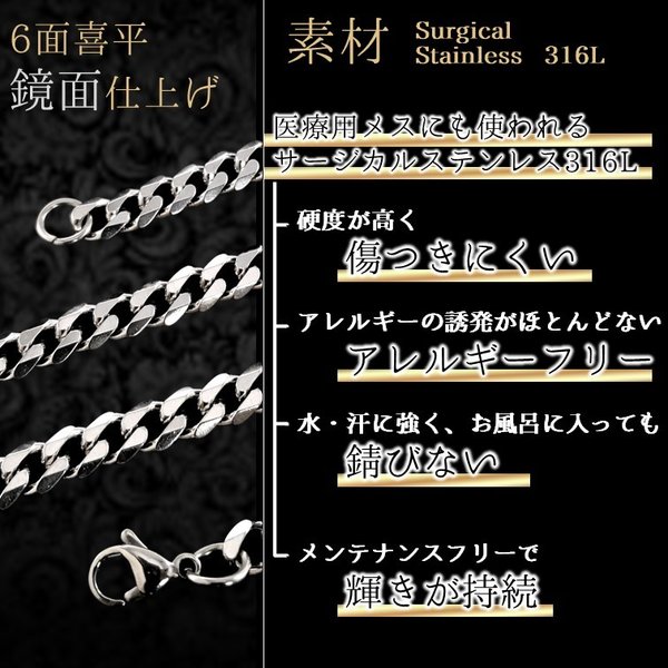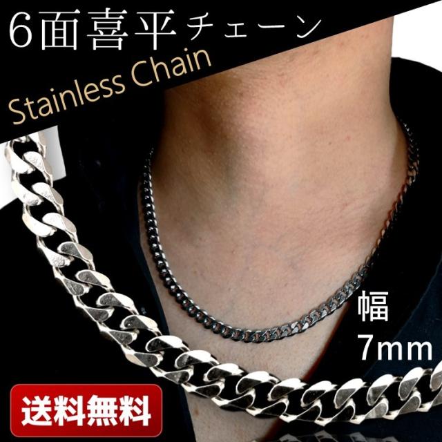 喜平 チェーン 6面 カット 幅 7mm 長さ 選べる 2種類 サージカルステンレス 316L ロングネックレス シルバークロス付き ギフト プレゼント ポイント消化 送料無料 リノウル
