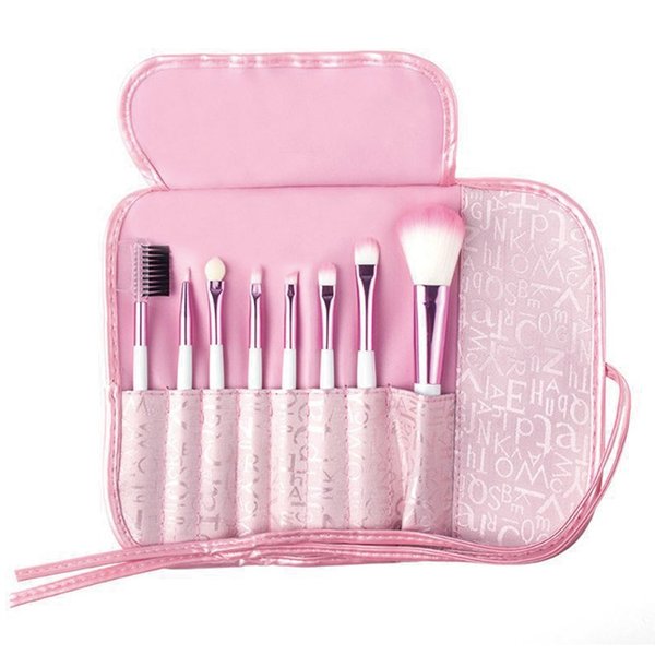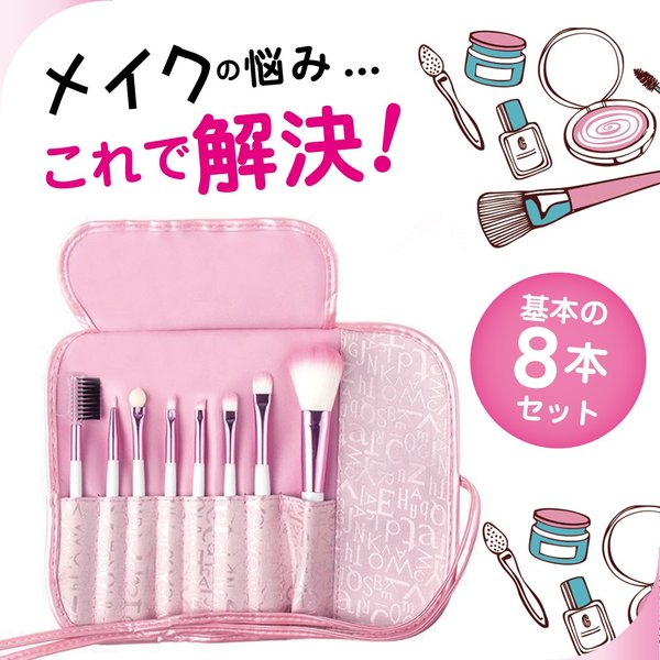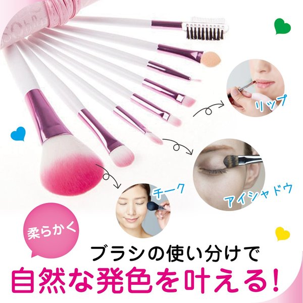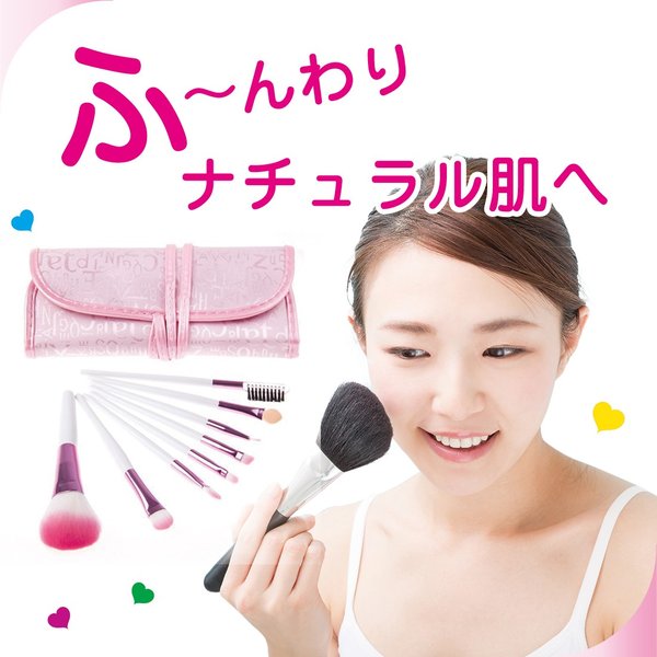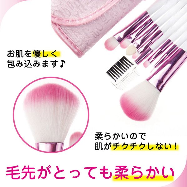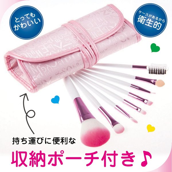 ・かわいいピンクのロゴ布の化粧ポーチ付き、メイクブラシセットです。