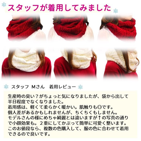 大きな輪になっている「スヌード」なので、かぶるだけでポカポカ暖かい♪