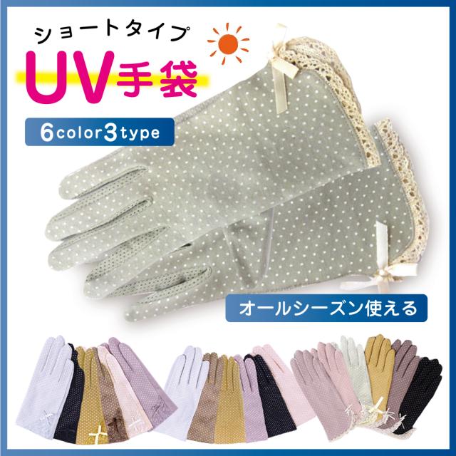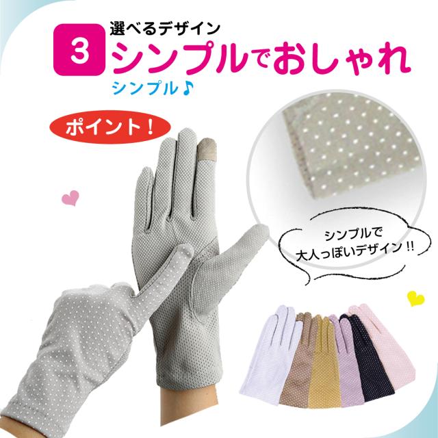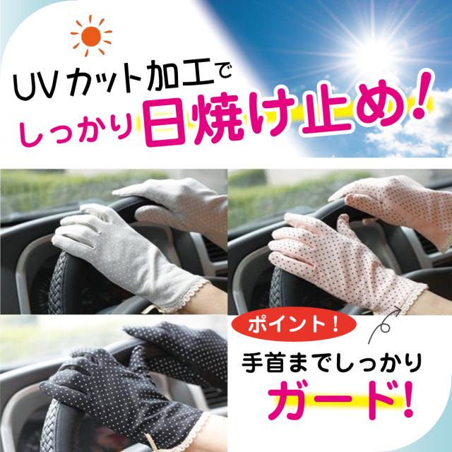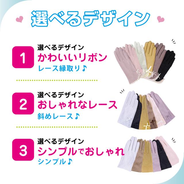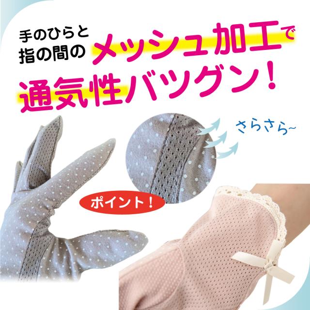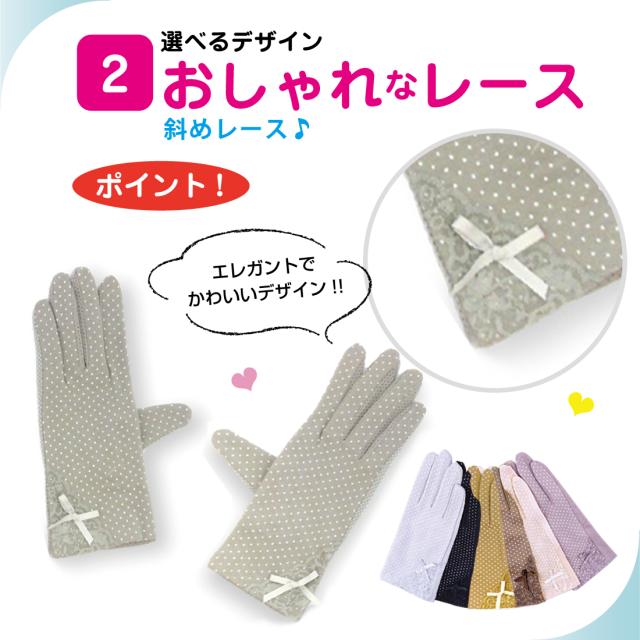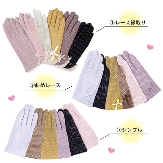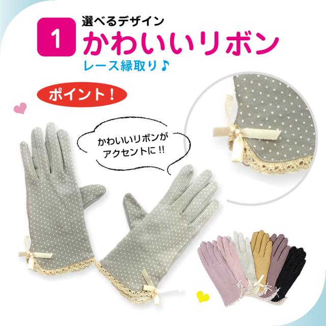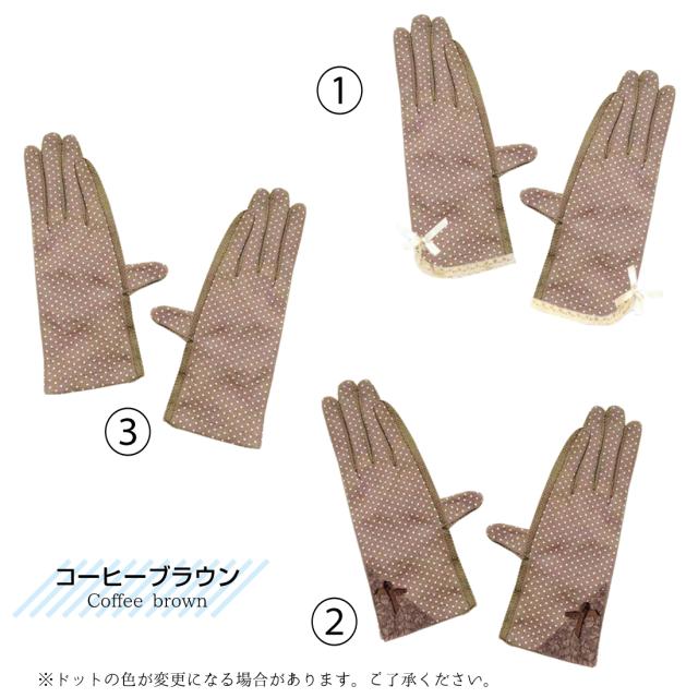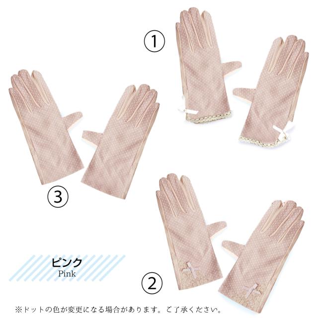 UVカット 手袋 水玉 柄 リボン メッシュ 指まで滑り止め 選べる 18種類 ドット 通勤 通学 お散歩 ガーデニング ギフト プレゼント ポイント消化 送料無料 リノウル
