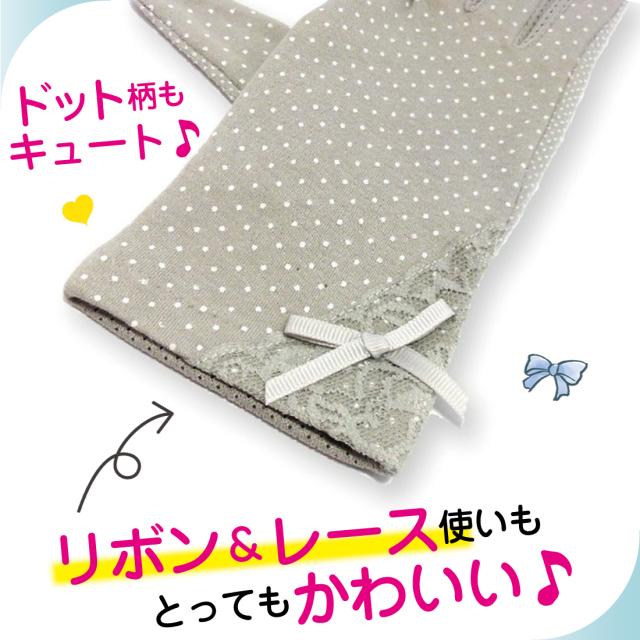 可愛い水玉、レース、リボン付きの フリーサイズ UVカット加工 手袋です