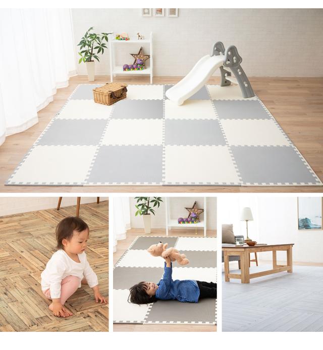 ジョイントマット 大判 3畳 60cm 16枚 おしゃれ サイドパーツ付 ケガ 防止 保護 安全 安心 防音 保温 耐水 軽量 北欧 フロアマット プレイマット キッズマット ベビーマット ジョイント マンション ベビー キッズ 子ども 赤ちゃん 新生活 ギフト