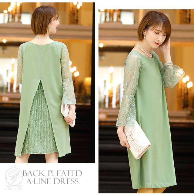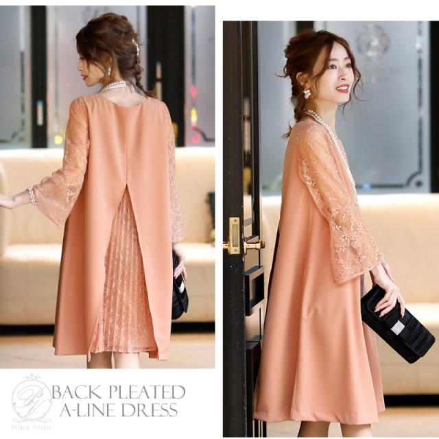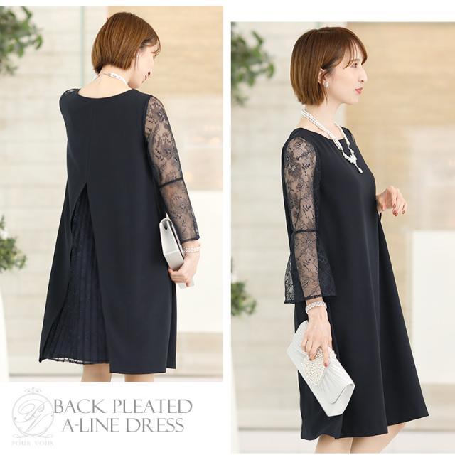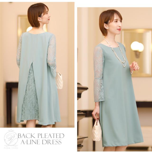 バックプリーツAラインドレス【3570】10代・20代・30代・40代・50代ドレスワンピ・服装・ワンピース・フォーマルワンピ・ドレスカジュアル・ブランド・半袖・七分袖・長袖・袖あり・リボン・ショート・プリーツ・膝丈・薄手・厚手・無地・脚長効果・伸縮性・レース・キレイめ・着やせ・体型カバー・スタイルアップ・ドレープ・小さいサイズ・3Lや4L・かっこいい、かわいい・即日発送・送料無料・・ご利用シーン・結婚式・婚活・披露宴・顔合わせ・発表会・演奏会・二次会・同窓会・お呼ばれ・食事会・謝恩会・親族・七五三・お宮参り・冠婚葬祭・弔事・女子会・韓国・デート・入学式・卒業式・入園式・卒園式・ママ・ピアノ・マタニティー・セレモニー・セレブ・パーティー