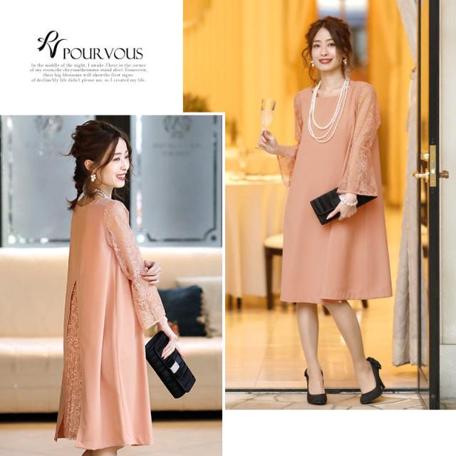 3570 ワンピース 結婚式 パーティードレス フォーマルドレス ドレス お呼ばれ フォーマル 大きいサイズ 服装 大人 服 ミセス 他と被らない 上品 20代30代40代 春 夏 秋冬 二次会 ファッション 体型カバー レディース 披露宴 レディス aライン 50代 膝丈 長袖 レース 七五三