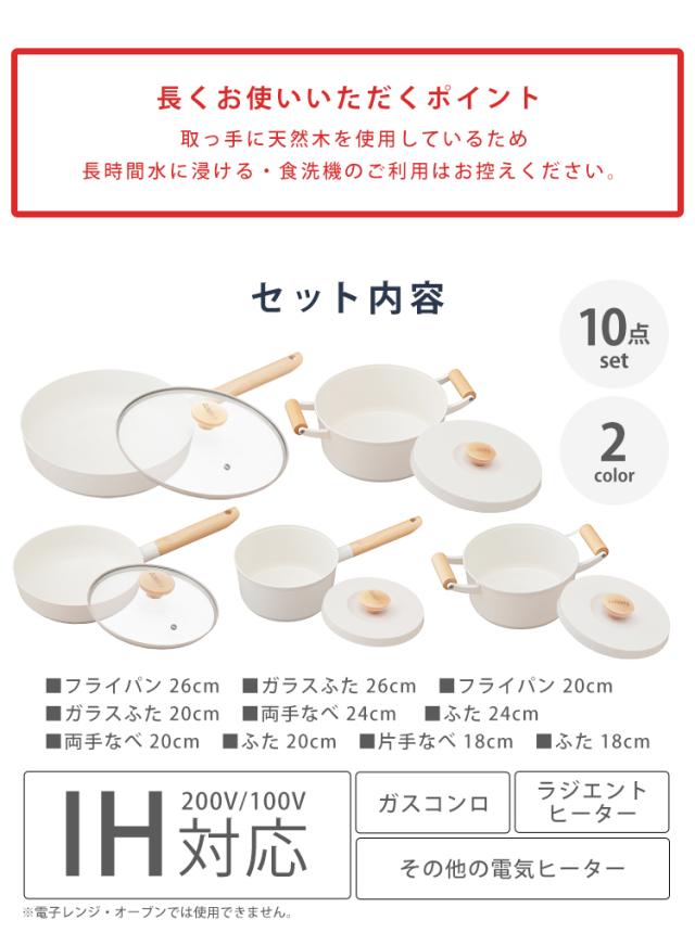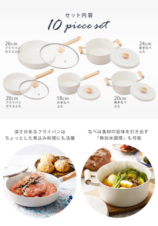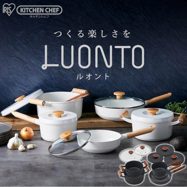 フライパン フライパンセット アイリスオーヤマ IH対応 ガス火 10点セット 新生活 ルオント フライパン・なべ 10点セット LUO-SE10W LUO-SE10G ホワイト ダークグレー かわいい おしゃれ 無加水鍋 鍋 ガス火対応 送料無料 プレゼント