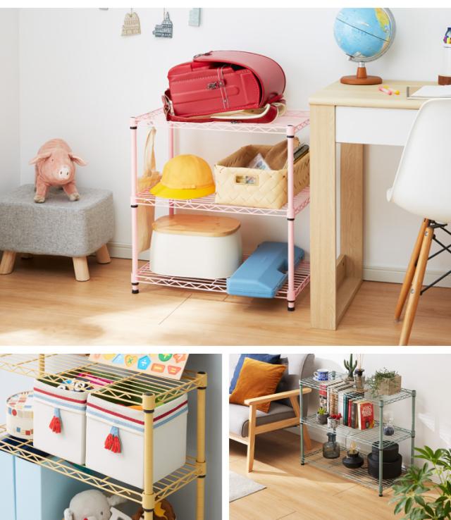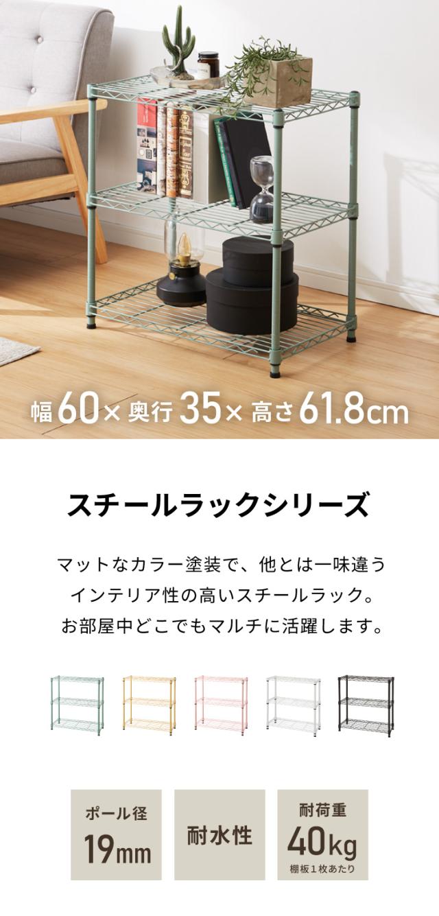 カラースチールラック 3段 耐荷重80kg 幅60cm 奥行35cm オープンラック スチールラック アジャスター リビング収納(代引不可)【送料無料】