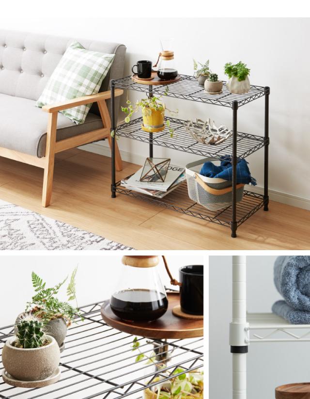 シンプルな形で様々なお部屋に置くことができる収納シェルフ。