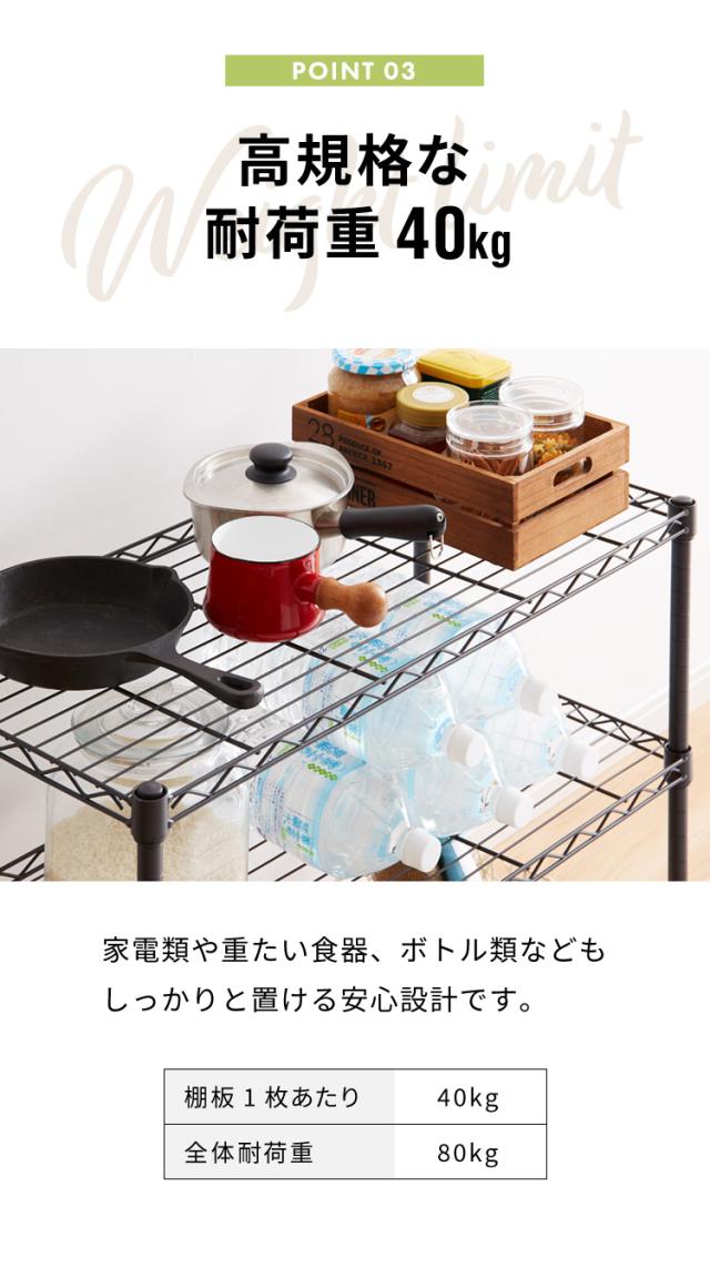 静止耐荷重:棚板40kg/枚、全体80kgまで