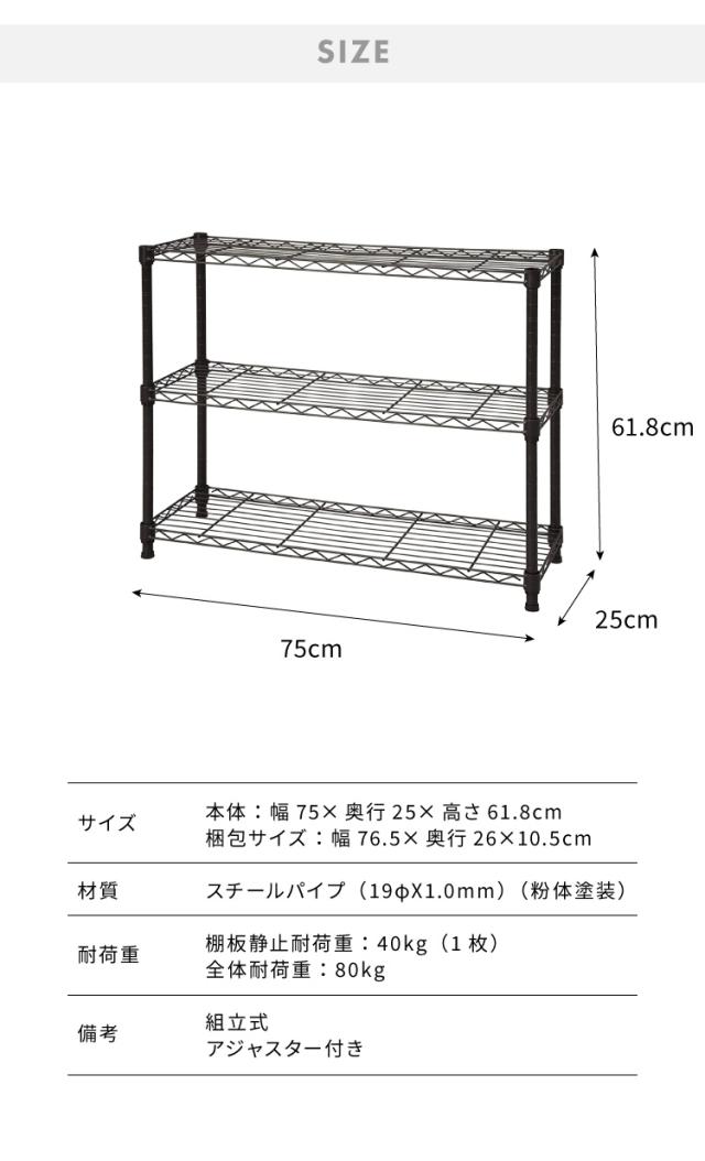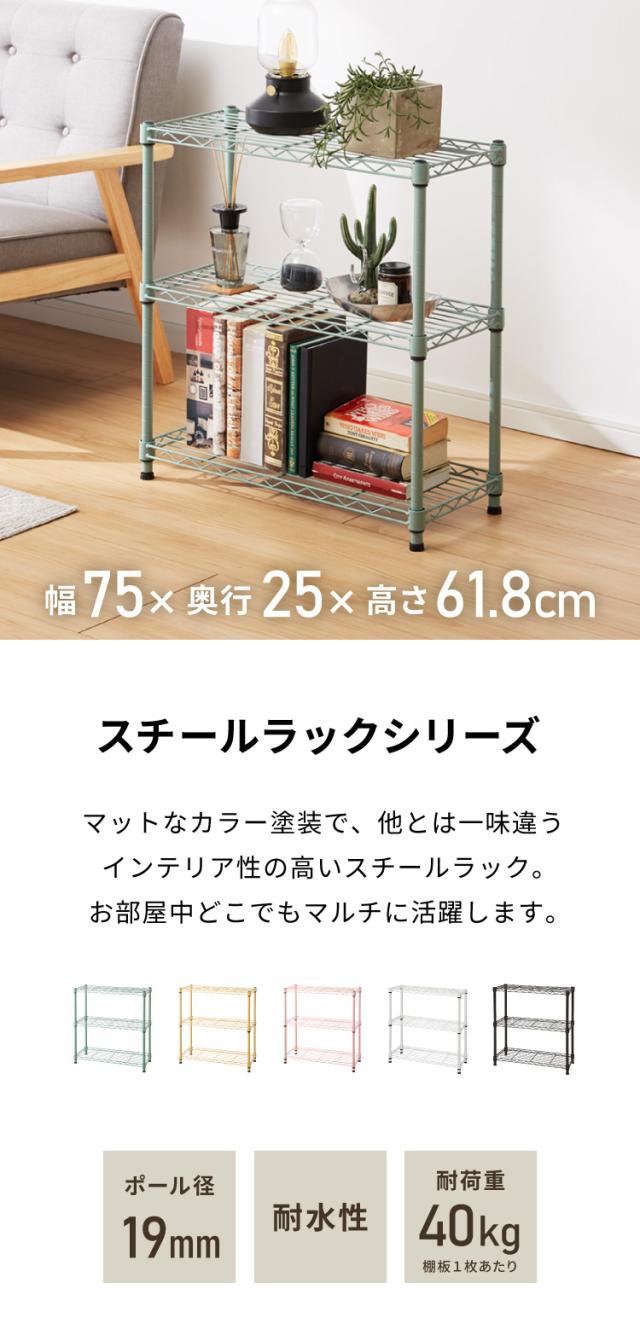 カラースチールラック 3段 耐荷重80kg 幅75cm 奥行25cm オープンラック スチールラック アジャスター リビング収納(代引不可)【送料無料】
