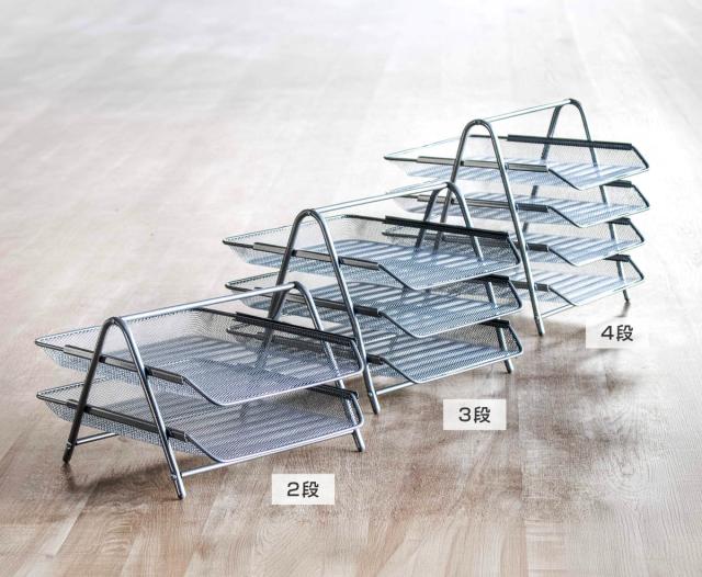 ファイルトレーは、2段・3段・4段の3タイプをご用意。設置スペースや用途に合わせて、使いやすい段数をお選びいただけます。
