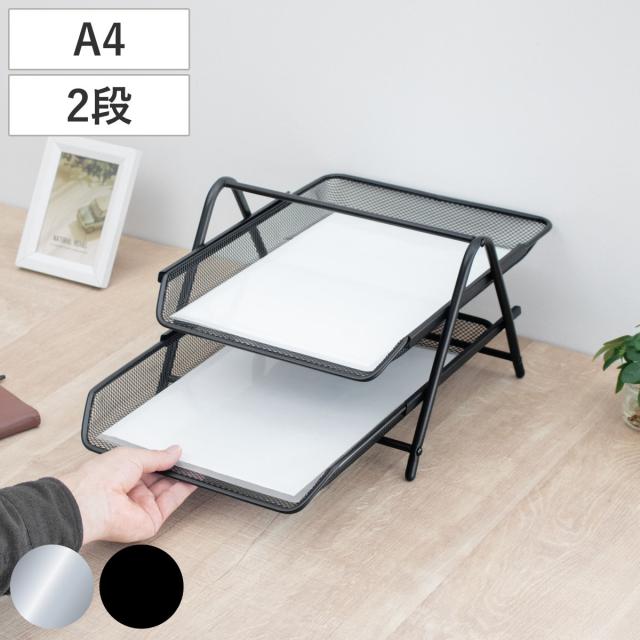 トレーはA4サイズのクリアファイルが収まるサイズ設計。縦に4段のトレーが付いているため、書類を種類ごとに分けて整理でき、デスク周りをすっきり整頓できます。