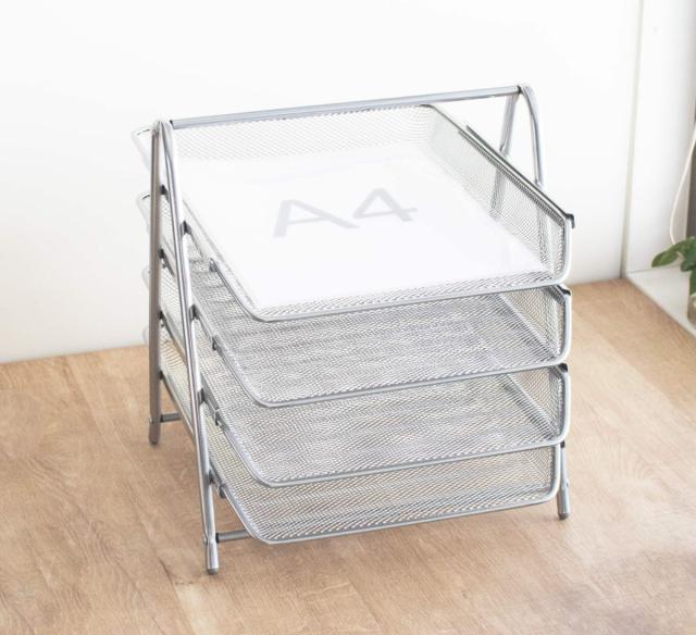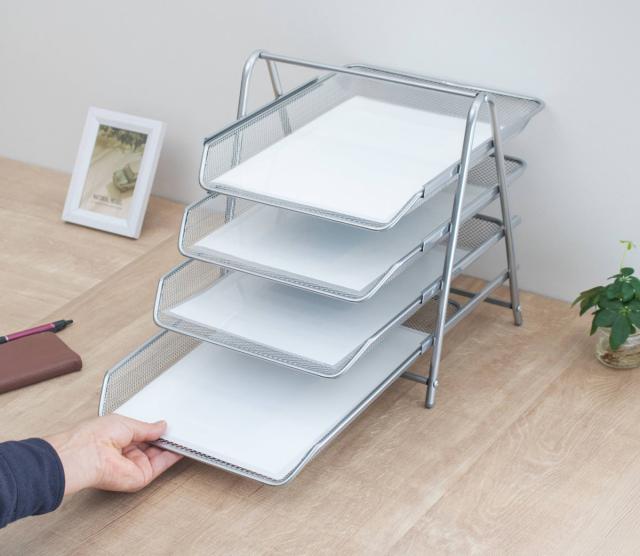書類整理に便利なA4対応の4段トレー