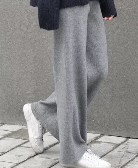 ワイドパンツ ニット らくちん ロング丈 ゆったり 黒 グレー かっこいい 秋冬 10代 20代 30代 お出かけ デート 着まわし 大人女子 カジュアル シンプル トレンド