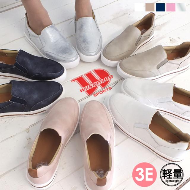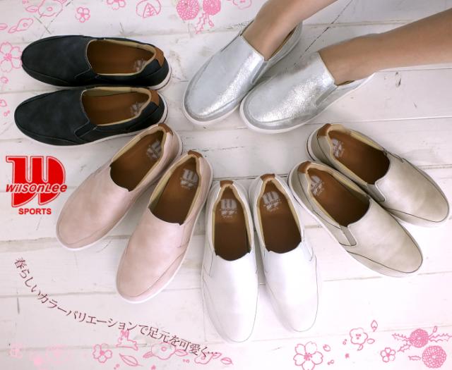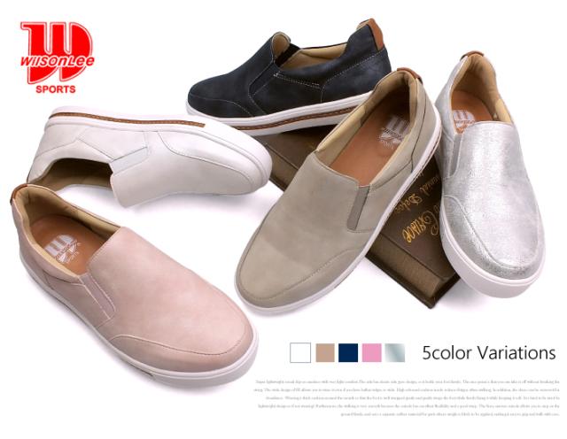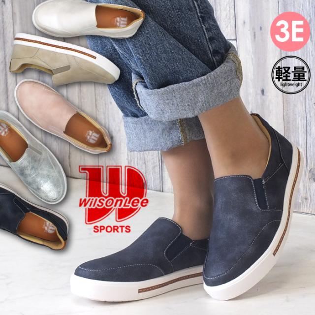 ソールのカラーラインがお洒落な楽ちんスリッポン スリッポン スニーカー カジュアルシューズ 高反発インソール レディース スニーカー 3E 幅広設計 靴 痛くない 快適 屈曲 滑りにくい 防滑ソール 軽量 送料無料 WILSON LEE SPORTS ウイルソンリースポーツ 5202