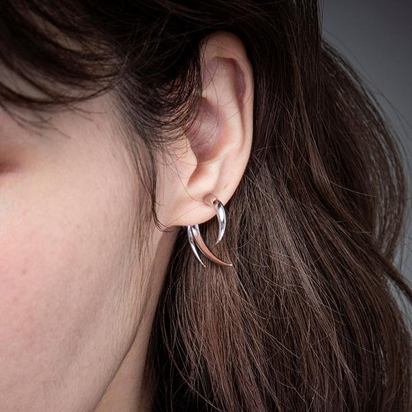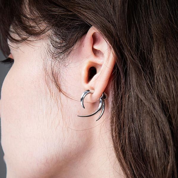 ギミック式フック型のフープピアス。キャッチ部分も造形がある立体的なデザイン。