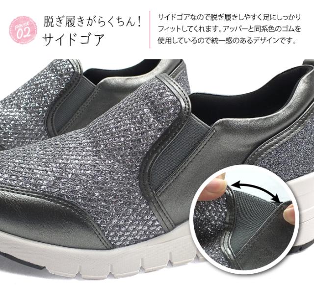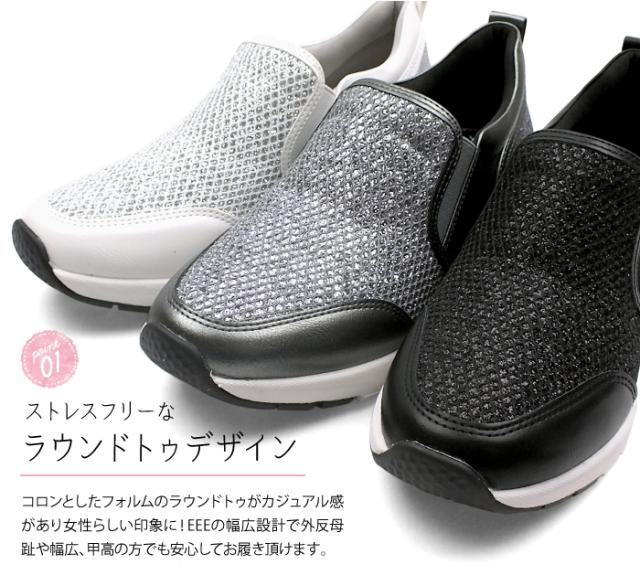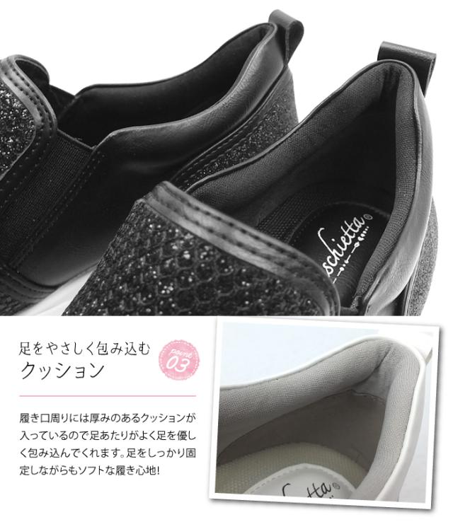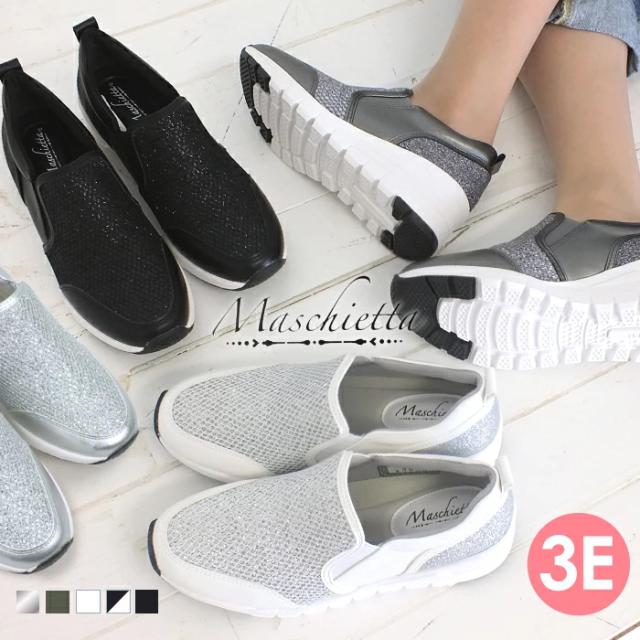 グリッターが眩しい厚底スリッポンスニーカー ローカット フラット 3E 幅広設計 外反母趾対策 カップインソール 痛くない 屈曲性 快適 軽量 防滑ソール 滑らない 送料無料 maschietta マスチェッタ 2702