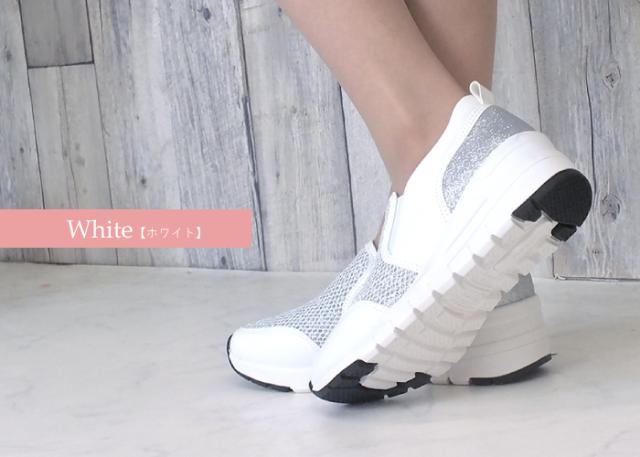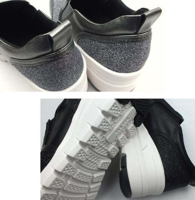 存在感のある煌びやかに光るグリッターとラメがアクセント!厚底スリッポンスニーカー