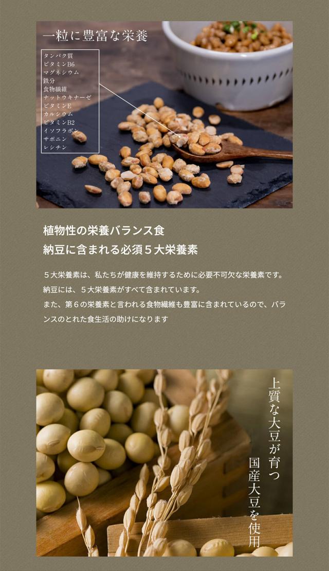[原材料] 納豆(大豆、納豆菌)(分別生産流通管理済み)、植物油脂(一部に大豆を含む)