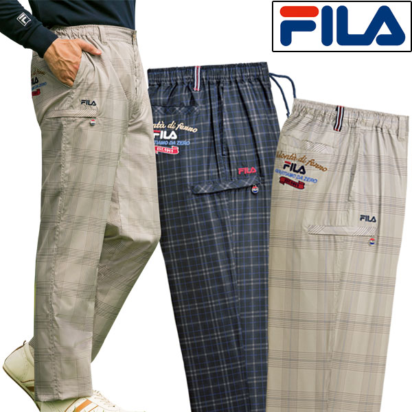 FILA フィラ カーゴパンツ 同サイズ2色組 チェック柄裏メッシュズボン 撥水加工 選べる股下 春秋冬 40代 50代 60代 957642