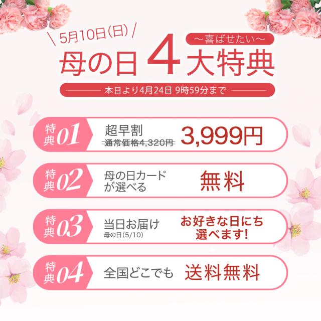 母の日の前日の朝ギリギリに頼んで間に合うか心配でしたが、当時無事届きました!!