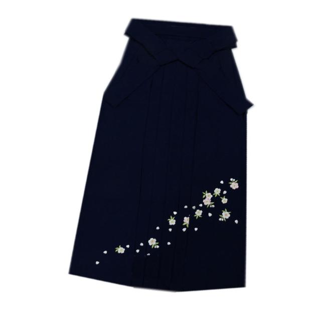 袴 はかま 無地 刺繍 濃紺色地桜 S M L LL 卒業式 謝恩会 女性用 単品 購入 洗える