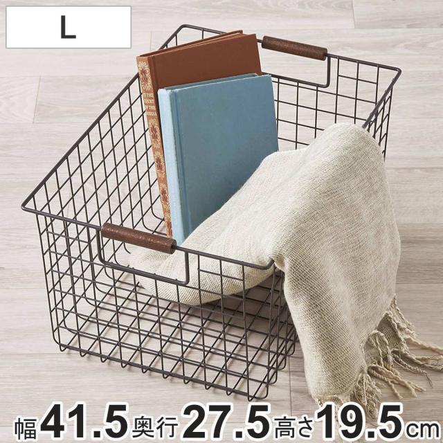 ワイヤーバスケット L 木柄 バスケット かご スチール ブラウン ( キッチンバスケット 収納 カゴ 角型 ワイヤー 持ち手付き スチール製 収納バスケット 小物入れ 小物収納 取っ手付き おしゃれ )