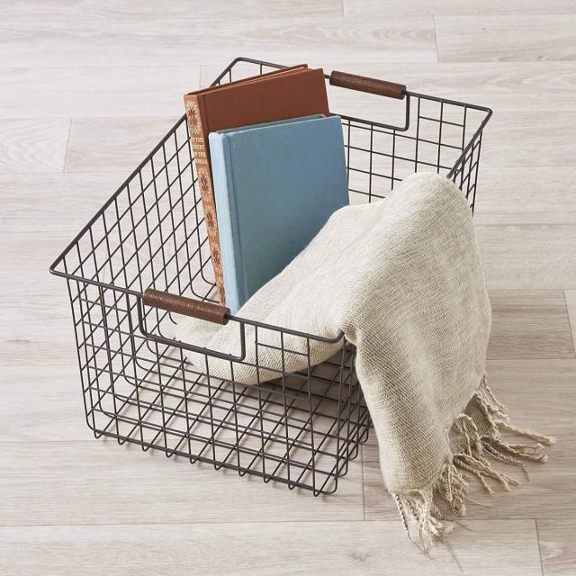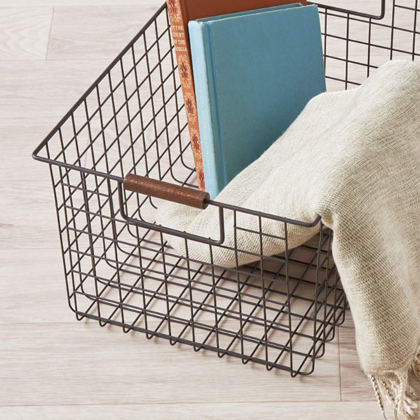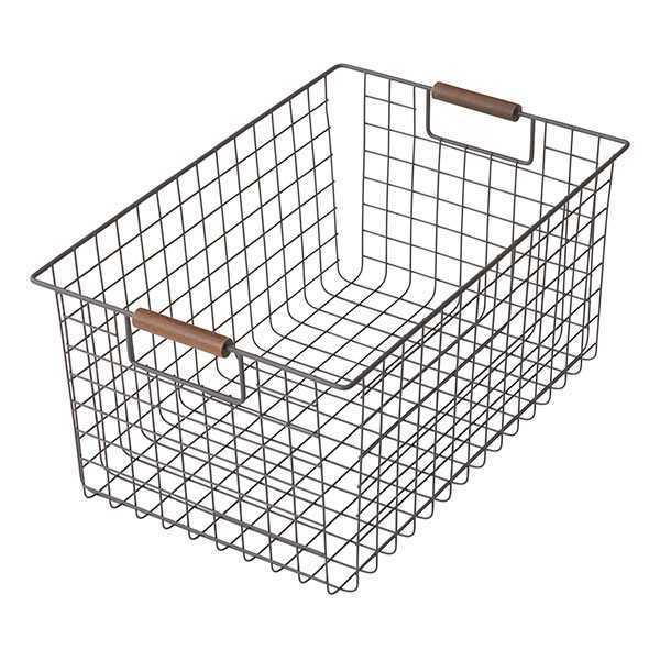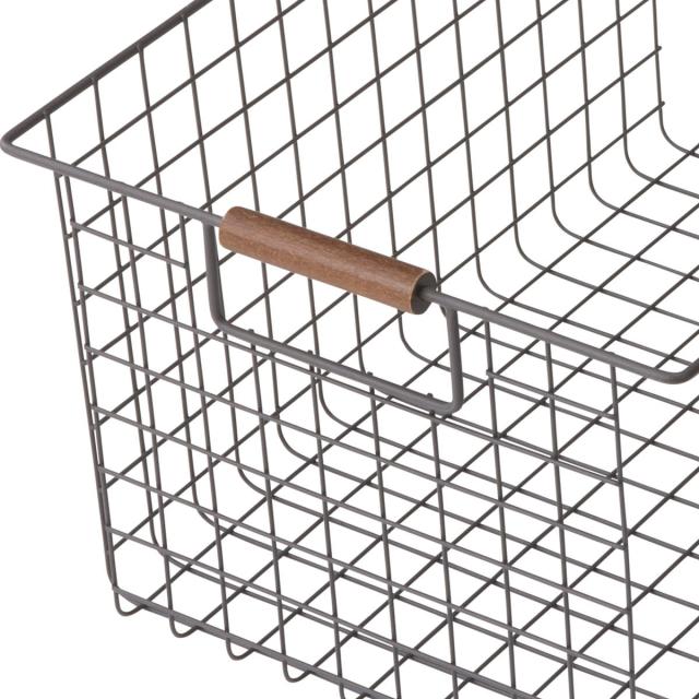小物類をまとめて収納するのに便利なワイヤーバスケットです。インダストリアルな雰囲気のワイヤーに、天然木を組み合わせたデザインは、幅広いテイストのお部屋になじみます。