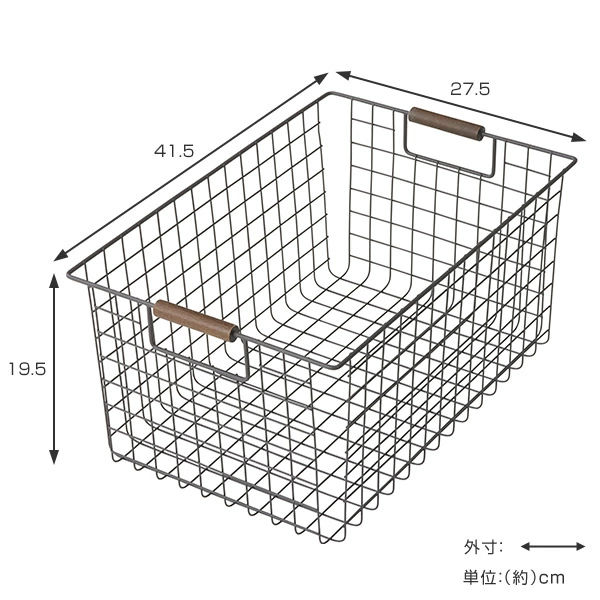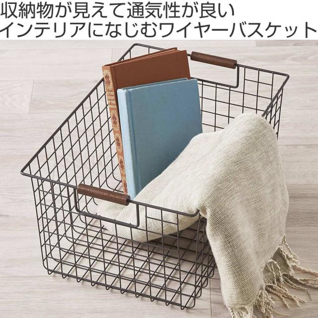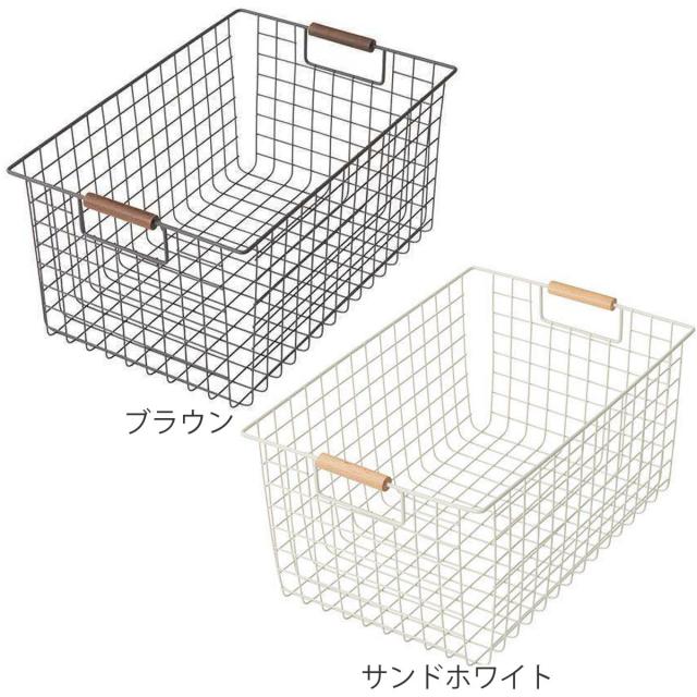 ワイヤーバスケット L 木柄 バスケット かご スチール ブラウン ( キッチンバスケット 収納 カゴ 角型 ワイヤー 持ち手付き スチール製 収納バスケット 小物入れ 小物収納 取っ手付き おしゃれ )