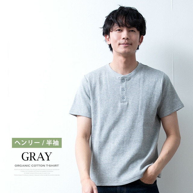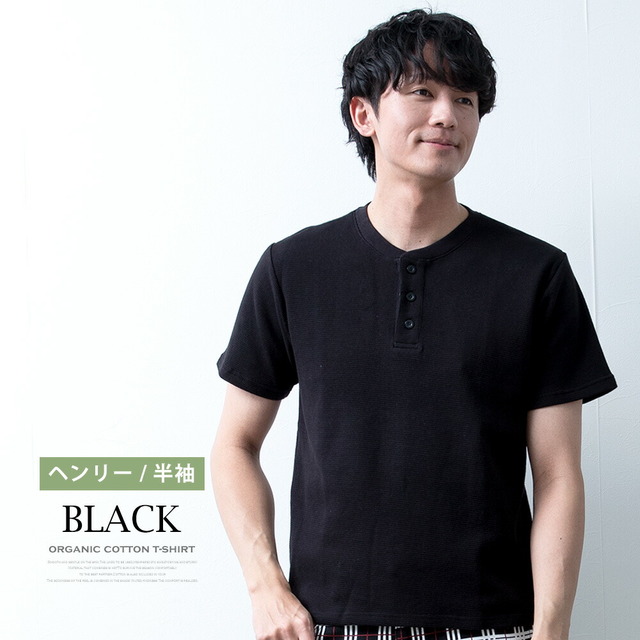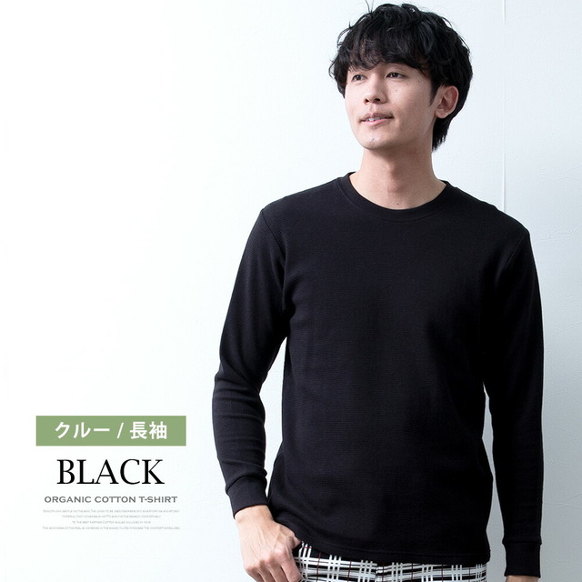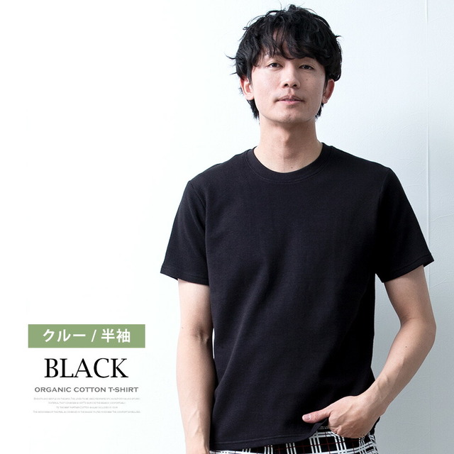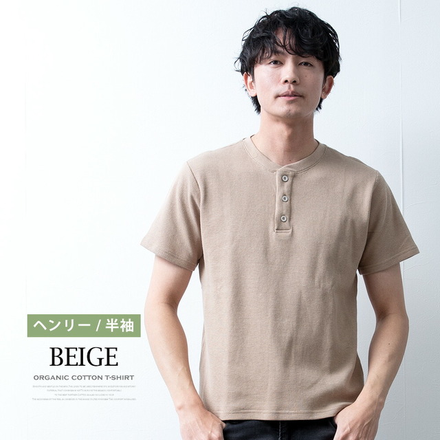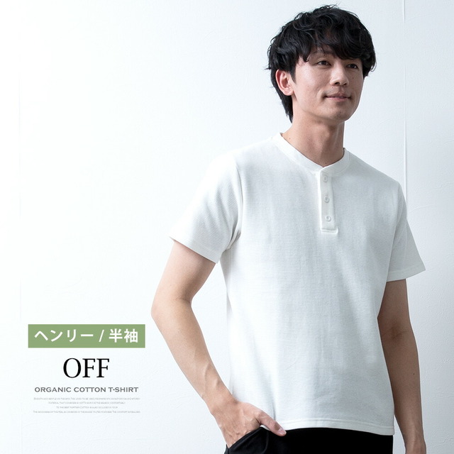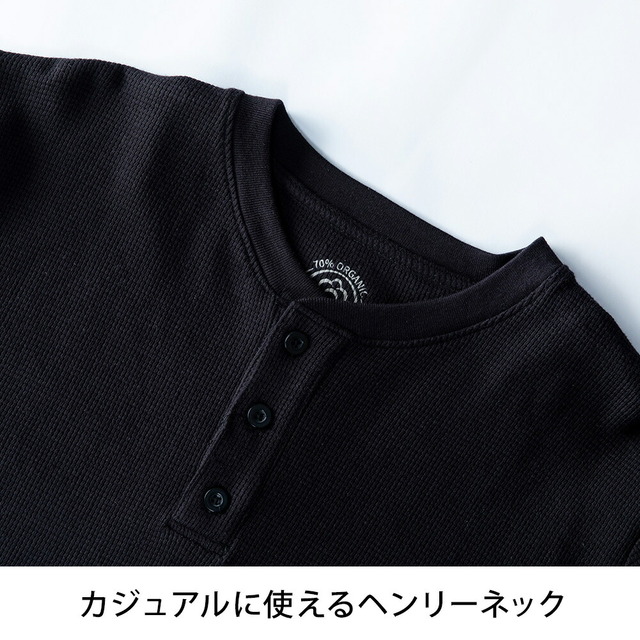 Tシャツ メンズ 半袖 長袖 ワッフル オーガニックコットン 綿100 クルーネック ヘンリーネック tシャツ ワッフルTシャツ コットン 半袖tシャツ 無地 トップス
